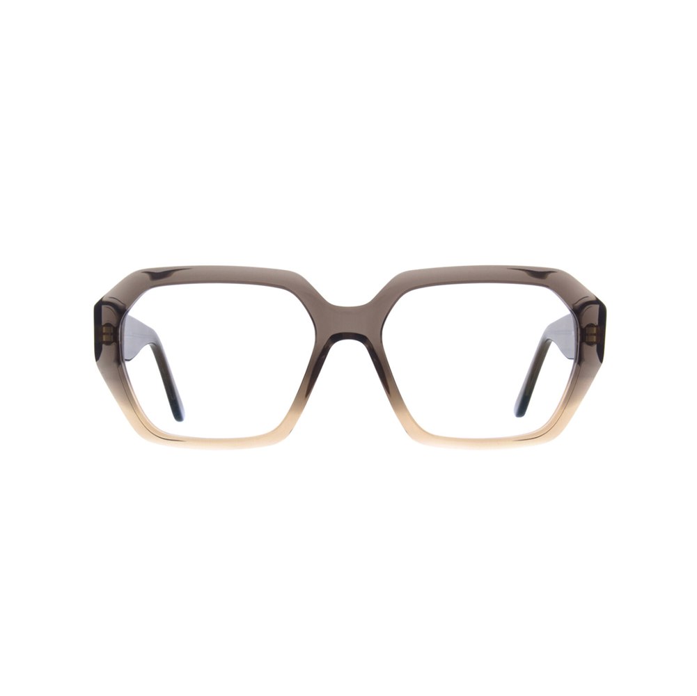 Bold and modern, the Andy Wolf 5149 Col.05 features a striking geometric shape and a gradient acetate frame that fades from smoky brown to warm amber. Handcrafted in Austria, this unisex design blends comfort with standout style—perfect for optical or sun lenses. Elevate your look with this unique statement piece.